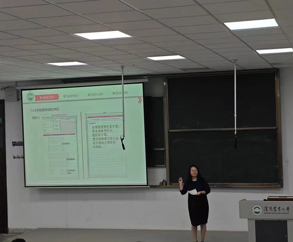 为帮助万象城网页版_万象城(中国)2023级同学备战全国大学英语四级考试,提高对外语学习的积极性,提升外语能力素养。近日,学院联合外语教学部于一教南区202教室开展了大学英语四级考试备考讲座活动。本次讲座由大学外语教研部朱翠华老师和宋静芳老师主讲,万象城网页版_万象城(中国)2023级学生现场参与了讲座活动。