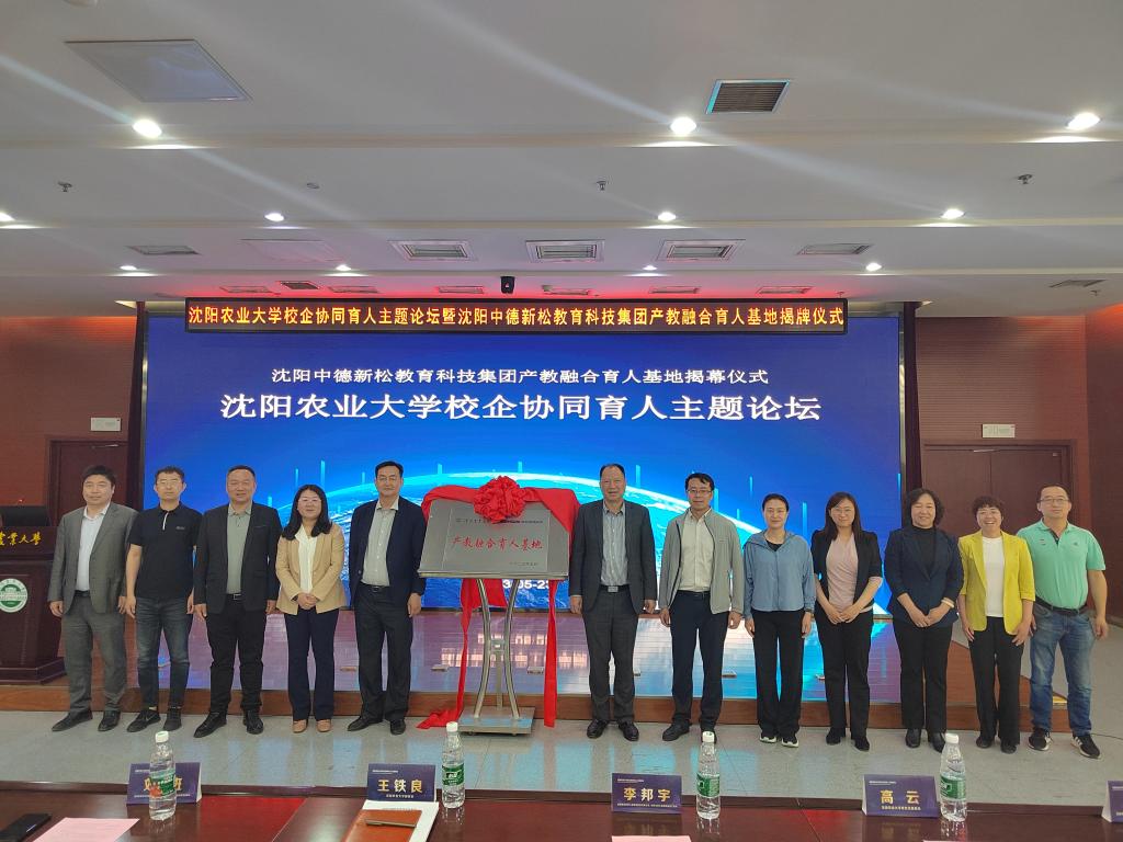 5月23日,万象城网页版_万象城(中国)联合沈阳中德新松教育科技集团举行校企协同育人主题座谈会。副校长王铁良出席会议并讲话,沈阳中德新松教育科技集团副总裁刘班出席会议,并共同为校企“产教融合教育基地”牌匾揭牌。
