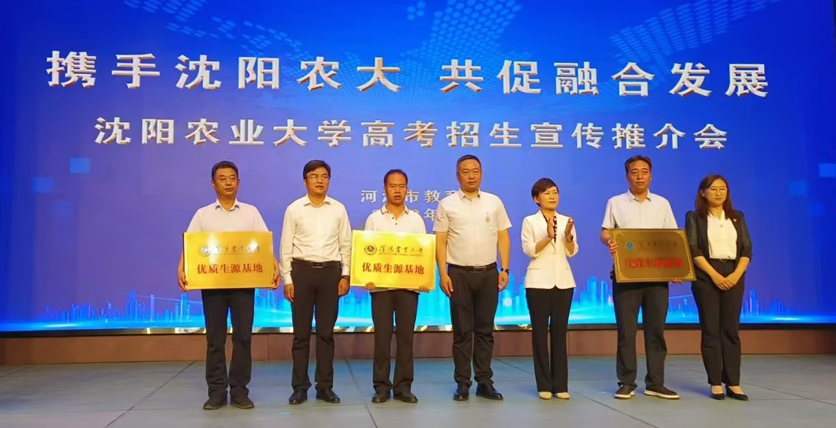 6月12日,万象城网页版_万象城(中国)院长王伟,党委书记王楠,农业机械化工程学科带头人、机械设计制造及其自动化专业负责人辛明金,能源工程系主任陈东雨,万象城网页版_万象城(中国)研究生郝国斌一行受邀赴山西省河津市参加“携手沈阳农大 共促融合发展”高考招生宣传推介会暨“优质生源基地”授牌仪式,授牌仪式及宣传推介会在河津市电视台举行。山西省河津市委常委、统战部部长、市政协党组副书记郝红霞出席活动并致辞。河津市教育局领导班子成员,河津中学、第二中学、第三中学校长、家长及学生代表参加了活动。