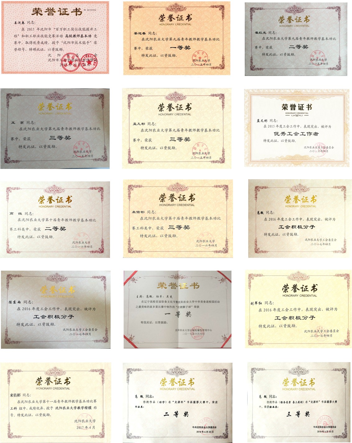 校第十一届青年教师教学竞赛工科类二等奖;获“教学标兵”