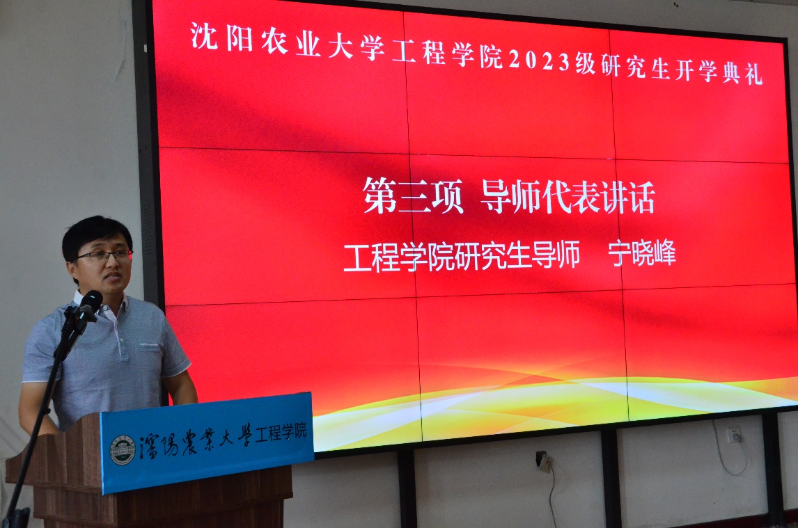 校优秀硕士学位论文指导教师宁晓峰副教授作为研究生导师代表发言。2021级农业工程与信息技术专业硕士研究生陈广硕、2023级农业机械化工程专业博士研究生顾诗雅分别代表在校生和新生发言。